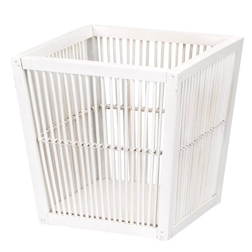 From the Household Essentials "Bamboo Wicker Collection" is this Bamboo/Fir waste bin. It features a sturdy metal and wood frame. The bottom of the bin is solid while the sides are bamboo stick. The finish is white. The waste bin measures 12-Inchhigh by 12-Inch deep by 12-Inch wide. Item #ML-6126.RelateItems